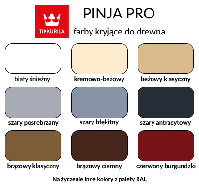 | Dwukrotne malowanie impregnatem Tikkurila Pinjasol Wax | 1800 | 2214 | 2200 | 2706 | 2300 | 2829 | 2300 | 2829 |