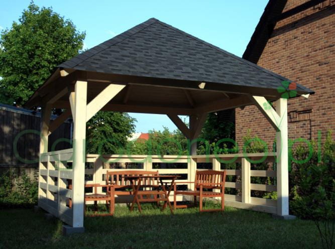 - rzut zadaszenia: 400x400 cm (powierzchnia zadaszenia: 16,0 m.kw.)