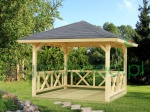 Dilara to przestronna altana ogrodowa  o wymiarze 350x350 cm - 12,25 m.kw. Zapewnia komfortowe warunki do spędzania czasu na świeżym powietrzu. Konstrukcja na planie prostokąta daje wiele możliwości aranżacji przestrzeni altany. Zabudowane ścianki pełnią dodatkową funkcję ochronę przed wiatrem i deszczem. Jest to idealne miejsce do zabawy, grillowania i wypoczynku. Całość bardzo solidnie wykonana.