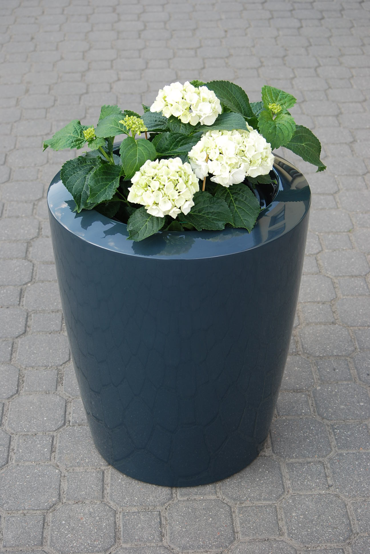 Zewnętrzna kolorowa warstwa donic ogrodowych zwana żelkotem ma dużą grubość, jest bardzo twarda, niezwykle wytrzymała i doskonale chroni przed uszkodzeniem. Jest to duża przewaga naszych wyrobów nad innymi, które zwykle są lakierowane lub nawet wykonane z polietylenu i bardzo łatwo ulegają porysowaniu. Dodatkowo, dzięki lustrzanej powierzchni i doskonałej gładkości znacznie ograniczone jest osadzanie się zanieczyszczeń na donicy.
