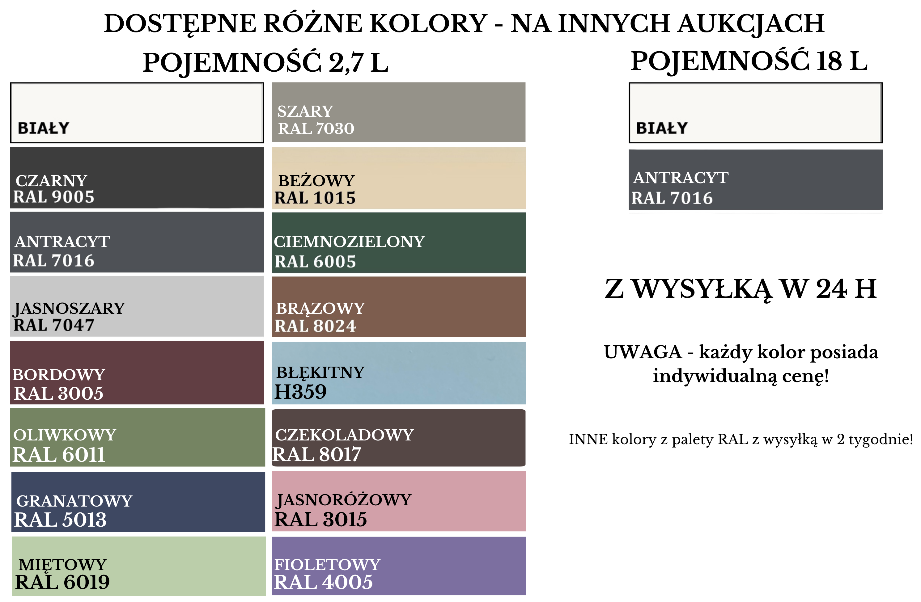 W naszej ofercie 16 nowych kolorów o pojemności 2,7 L i 2 kolory o pojemności 18 L (z wysyłką w 24 h)