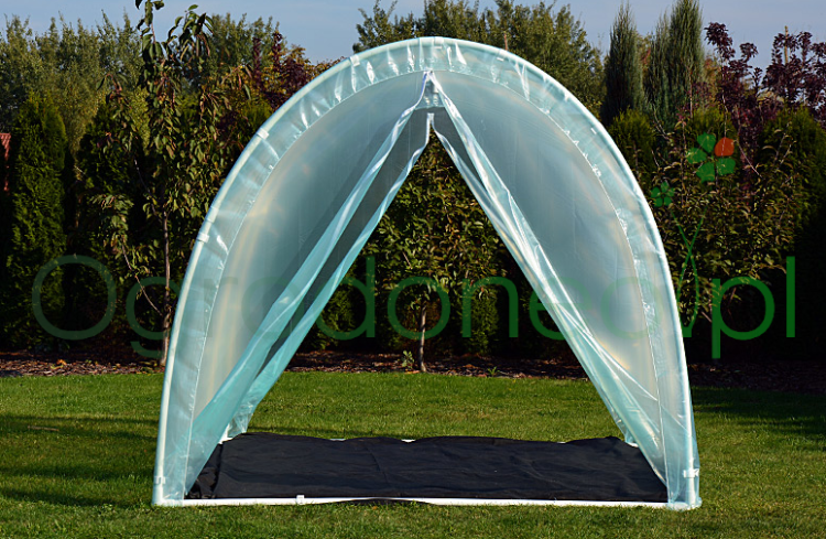 Folia zabezpiecza przed silnym wiatrem, opadami, gradem a także innymi niekorzystnie działającymi warunkami atmosferycznymi. Dzięki obustronnie zamontowanym zamkom błyskawicznym mamy możliwość regulacji temperatury.