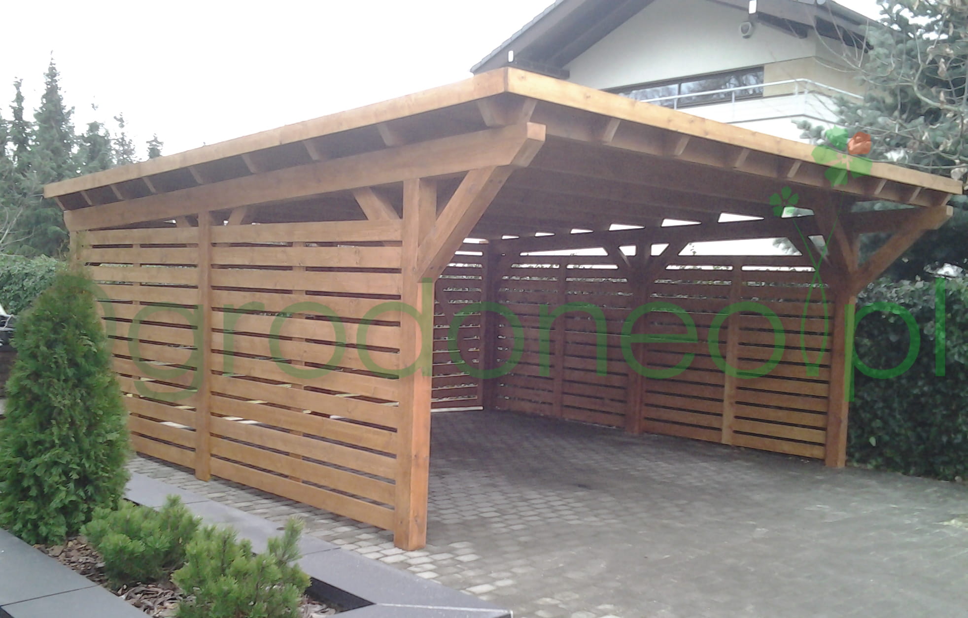 - istnieje możliwość domówienia wielu opcji dodatkowych (usługa montażu, malowanie, pokrycie dachu gontem bitumicznym lub blachodachówką, rynny PCV)