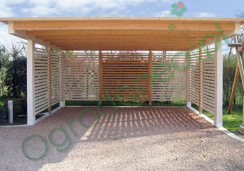 Bonita to stylowa wiata garażowa z przeznaczeniem na dwa auta, o wymiarze 580x500 cm - 29 m.kw. i zadaszeniu 600x600 cm - 36 m.kw. Konstrukcja w stylu nowoczesnym, dach jednospadowy do tyłu. Dzięki zastosowaniu dużych przekrojów drewna (większych niż wynika to z wymogów wytrzymałości) wiata wygląda masywnie. Całość wykonana solidnie i z dbałością o szczegóły. Zabudowa pełni funkcję ochronną ale również dekoracyjną.