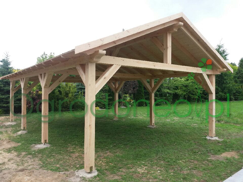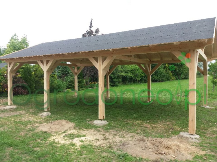 - solidna konstrukcja na słupach o przekroju 16x16 cm, oczepy 18x16 cm, krokwie 16x6 cm